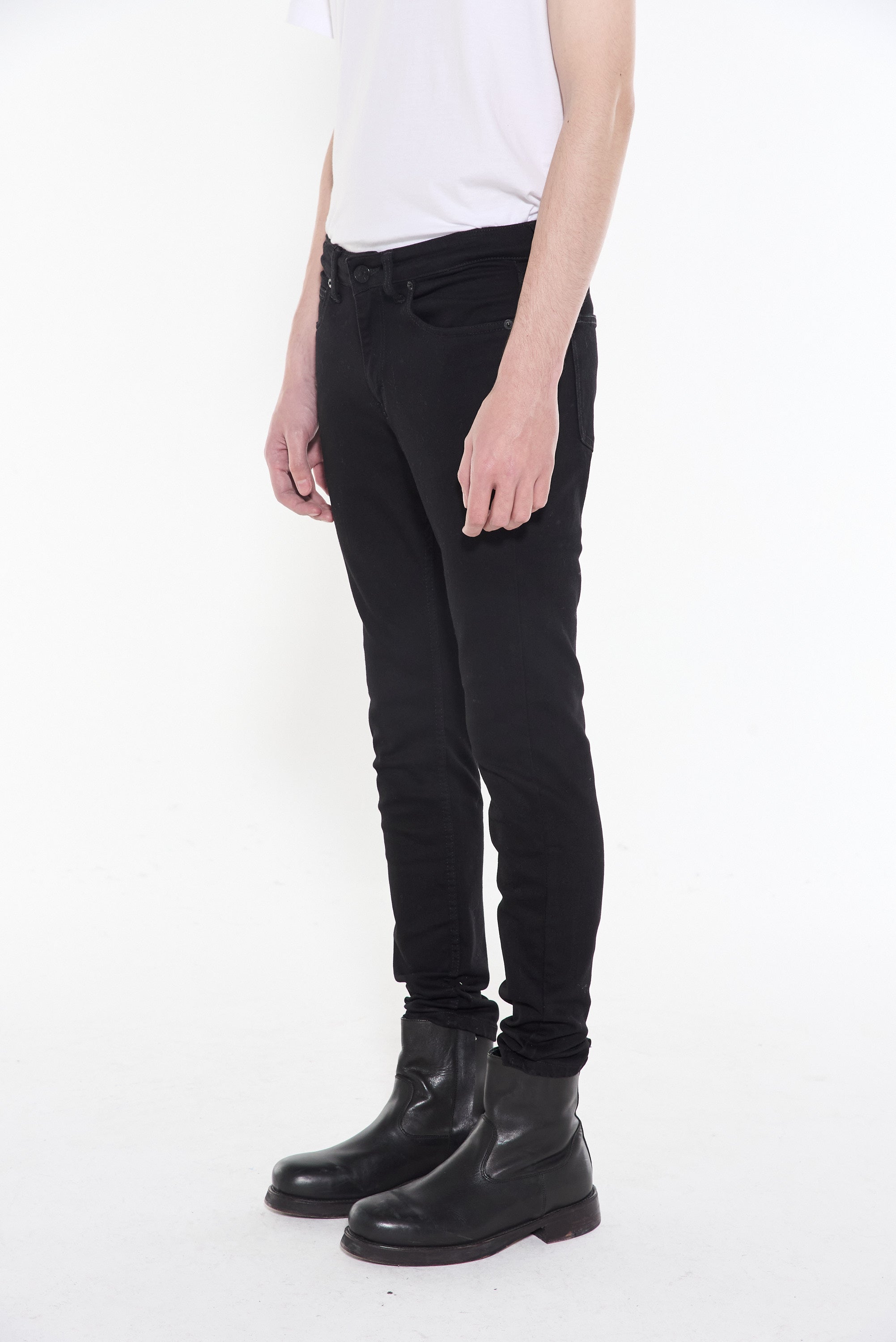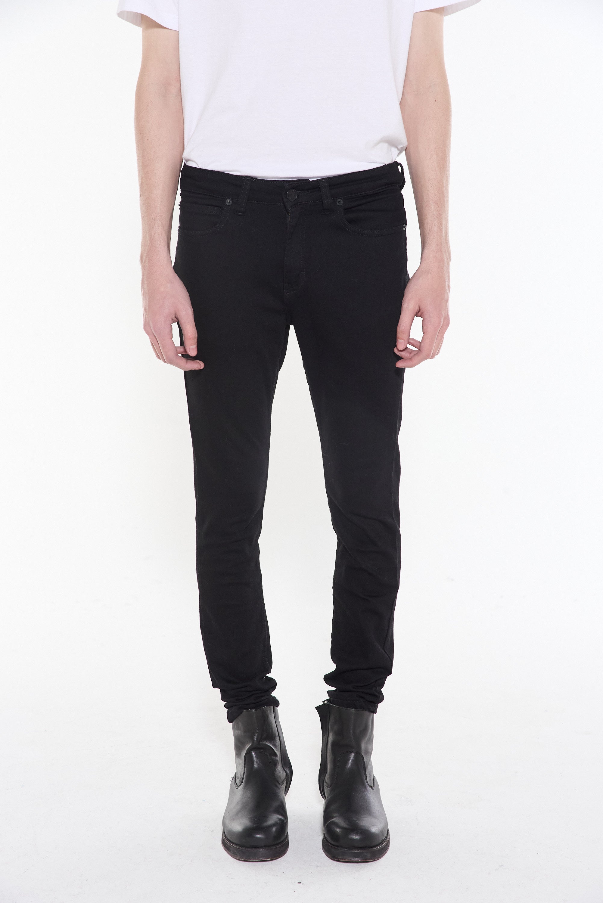 Jean 5 bolsillos, en tejido elastizado, lavado negro pleno.