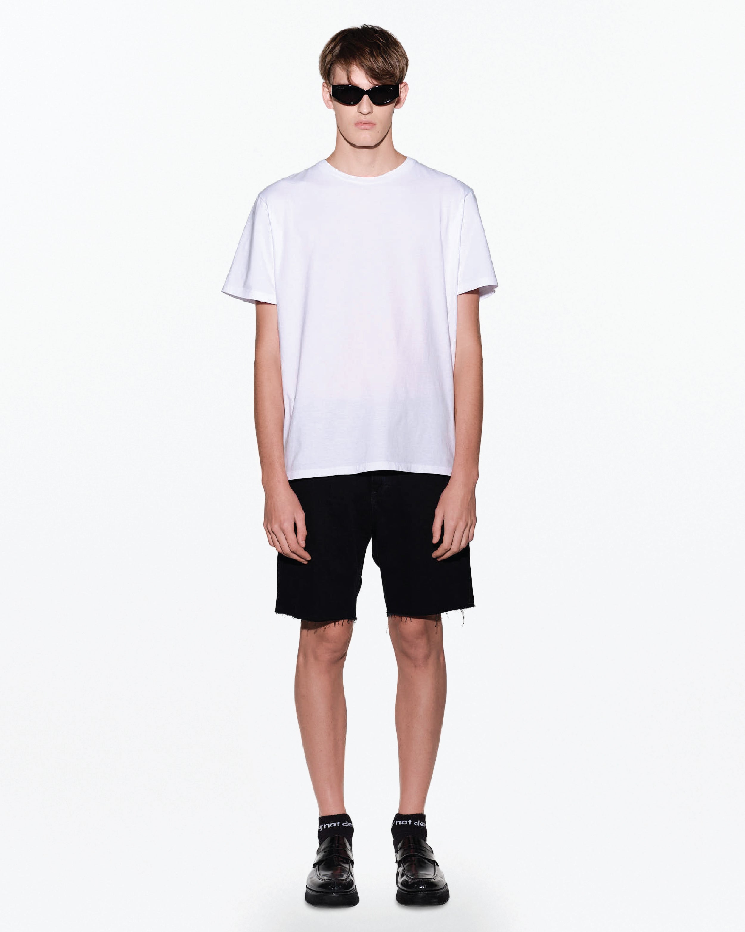 Short 5 bolsillos, tejido 100% algodón, negro lavado. Calce recto.