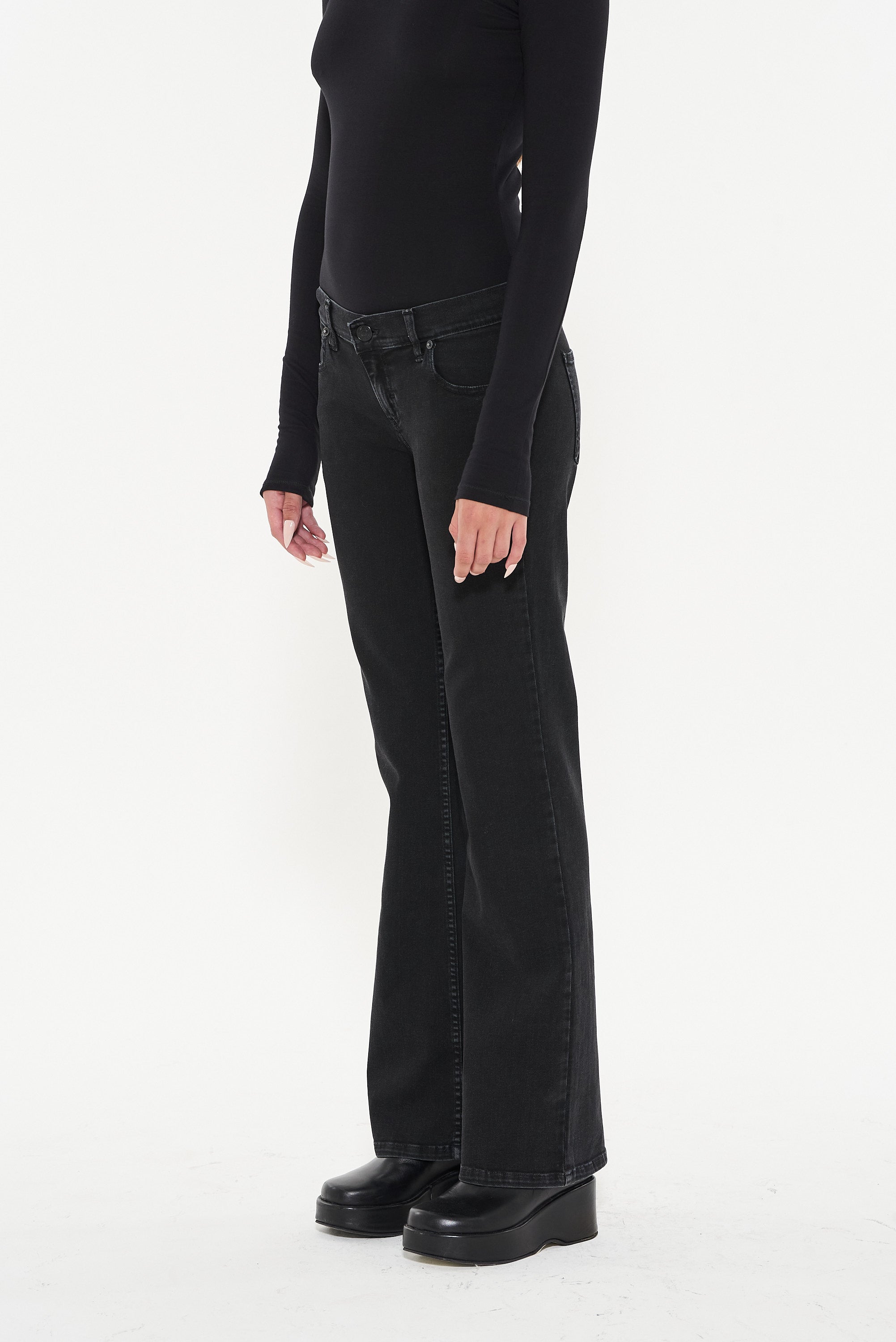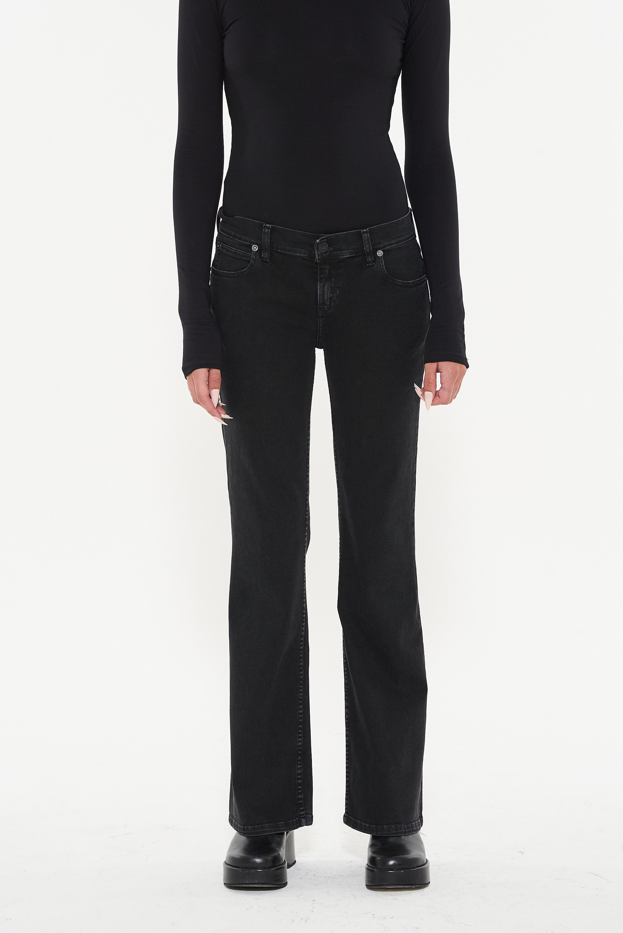 – Pierna recta, ceñida en rodilla y bota amplia.