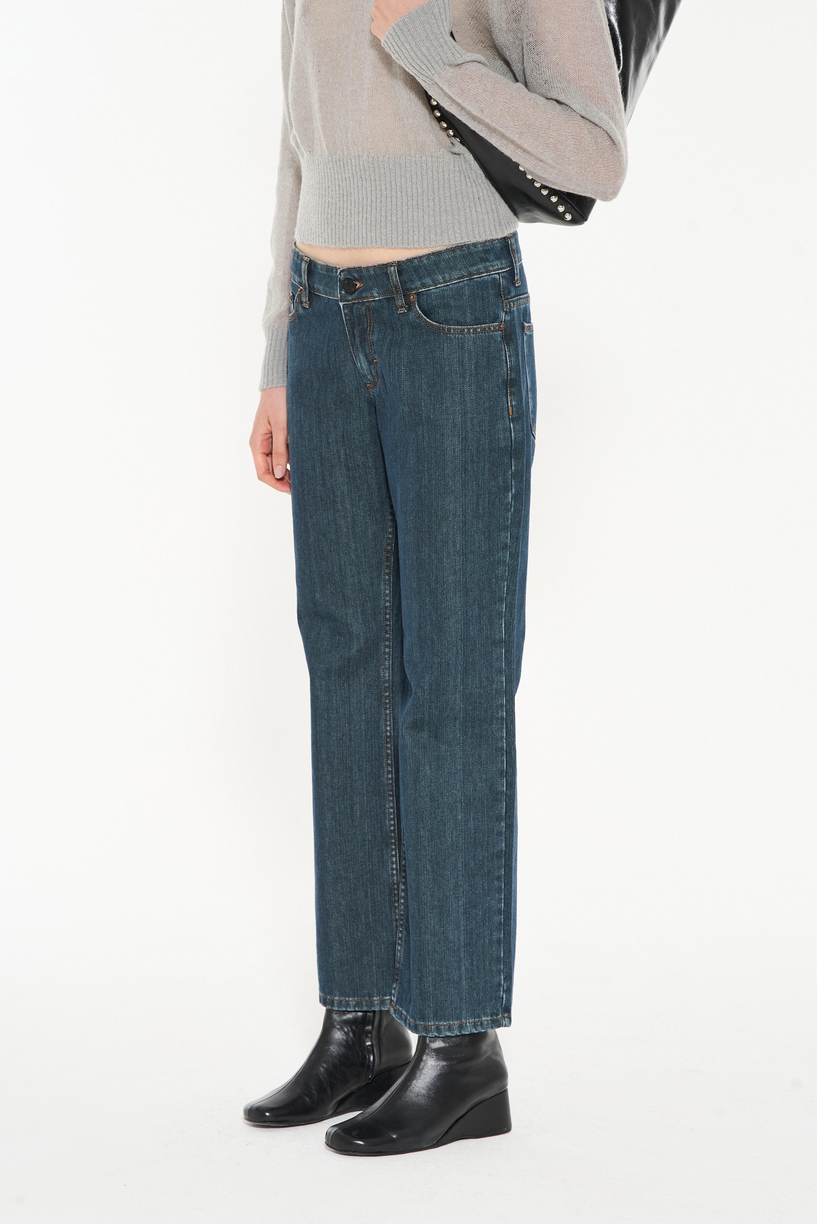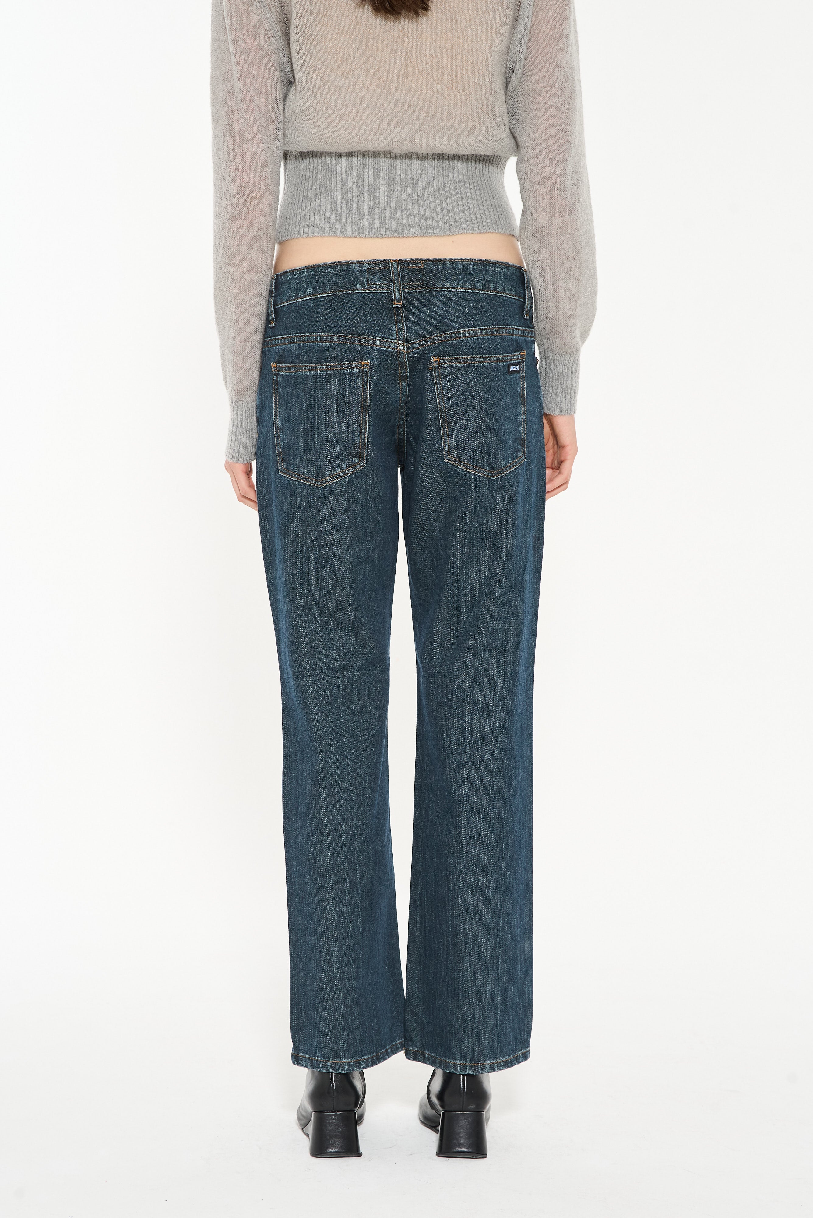 Jean 5 bolsillos, denim 100% algodón intermedio, con textura ring. Lavado color azul verdoso.