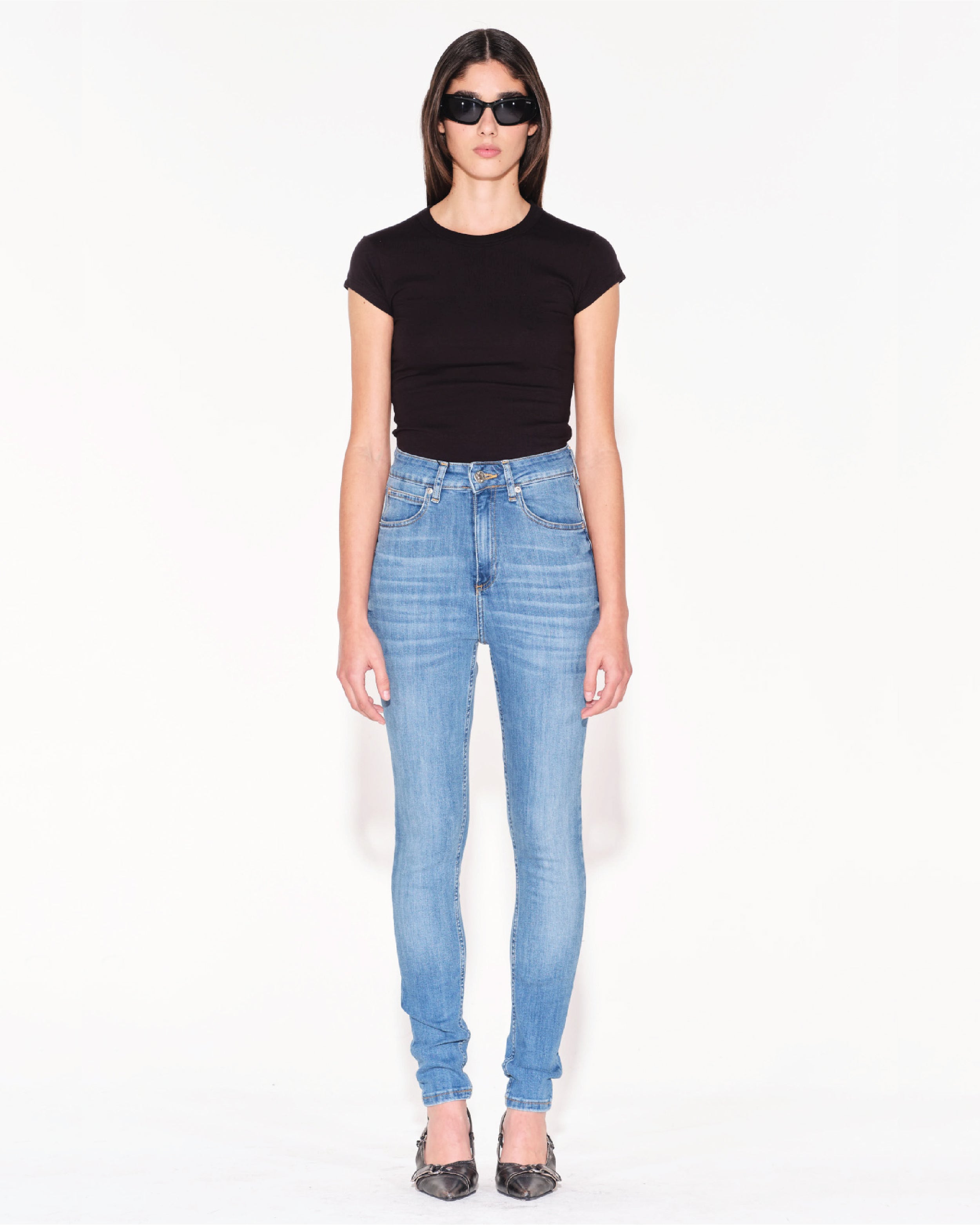 Jean 5 bolsillos, en tejido elastizado, azul.