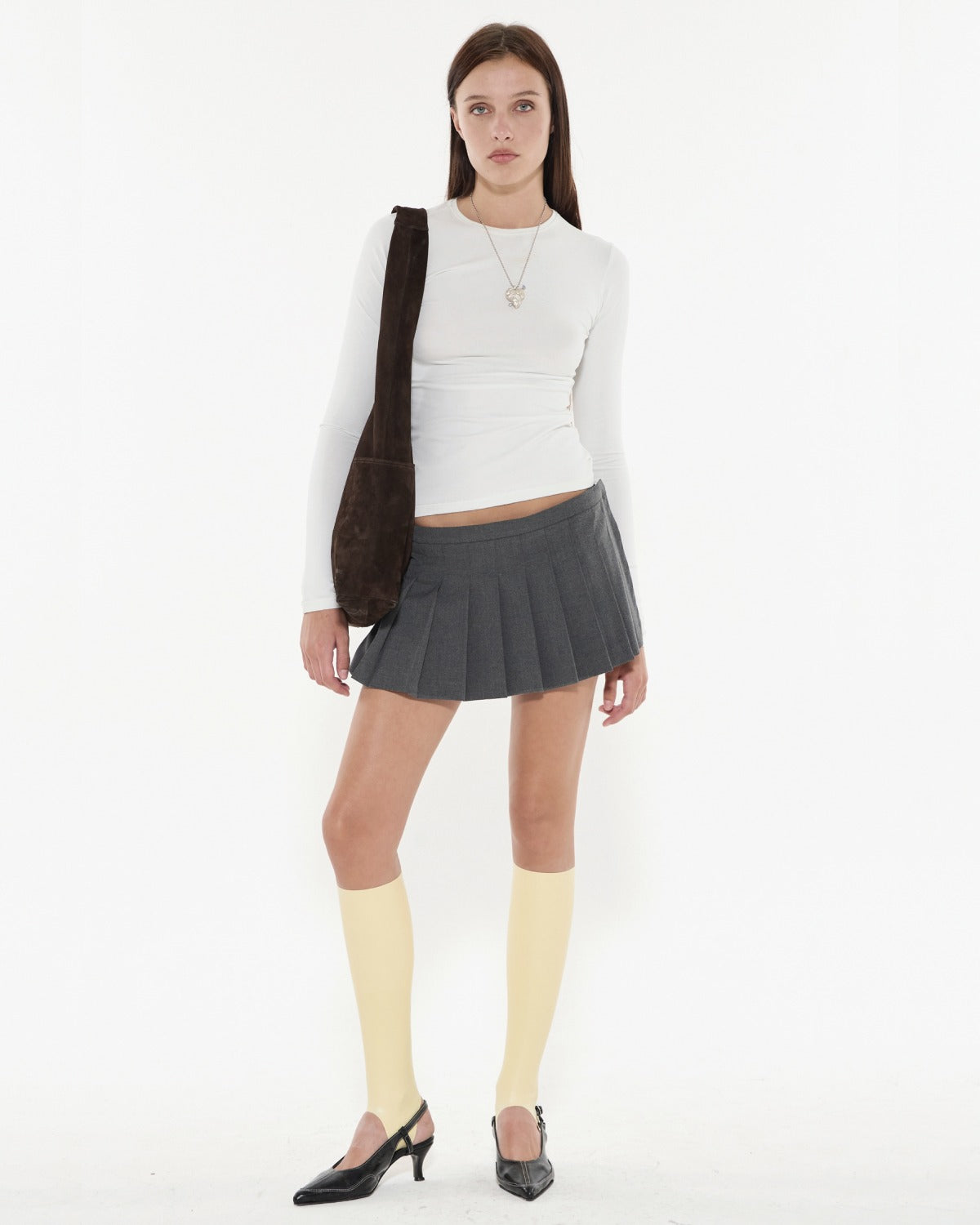 Pollera mini sastrera tableada tipo portafolio con short por debajo. Confeccionada en sarga sastrera lisa. Tiro bajo. Acceso mediante cierre invisible a tono en el lateral y botón oculto.