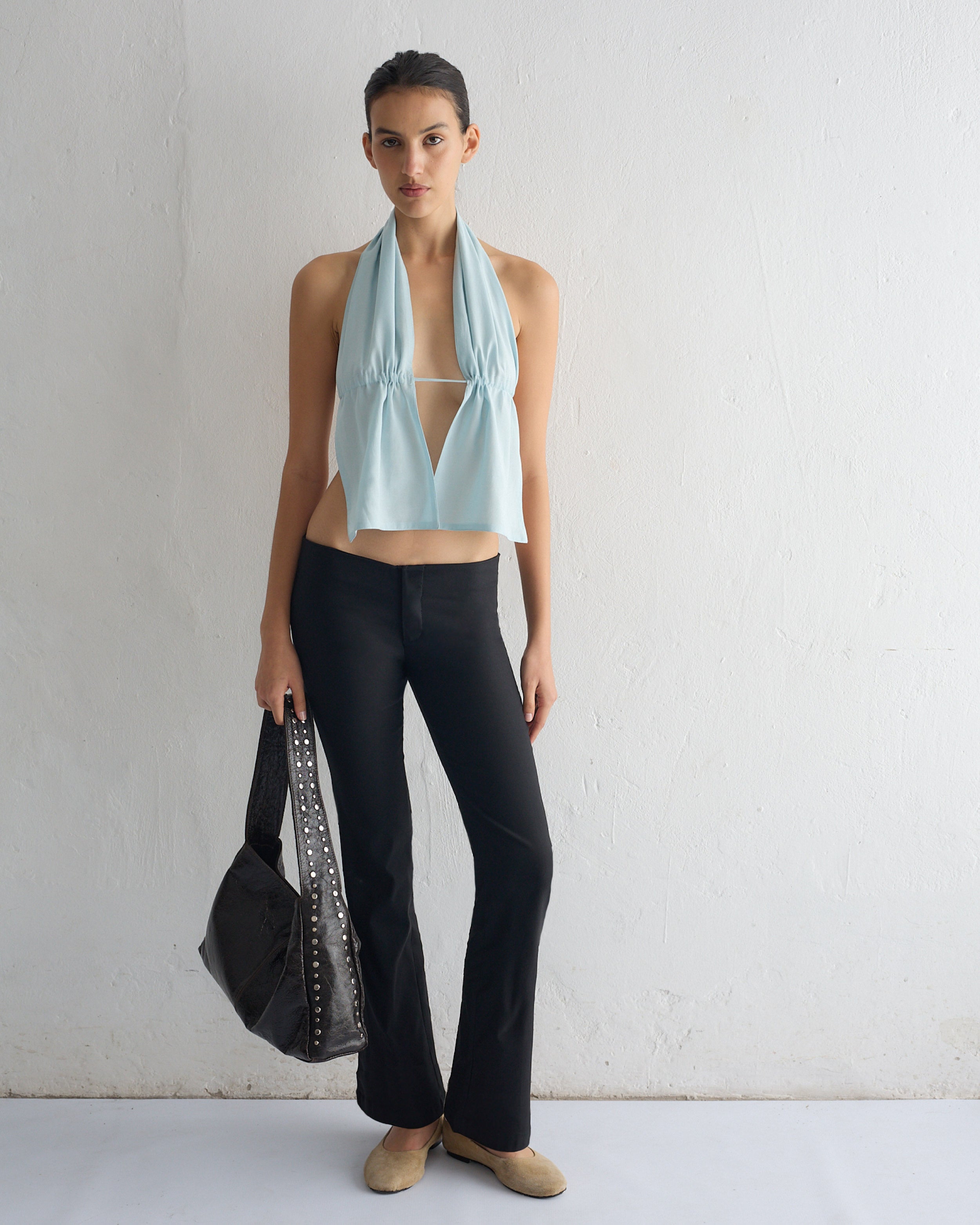 Pantalón confeccionado en bengalina. De tiro bajo y calce bootcut. Acceso mediante cierre al tono y gancho pantalonero. Cintura terminada con vista interna.