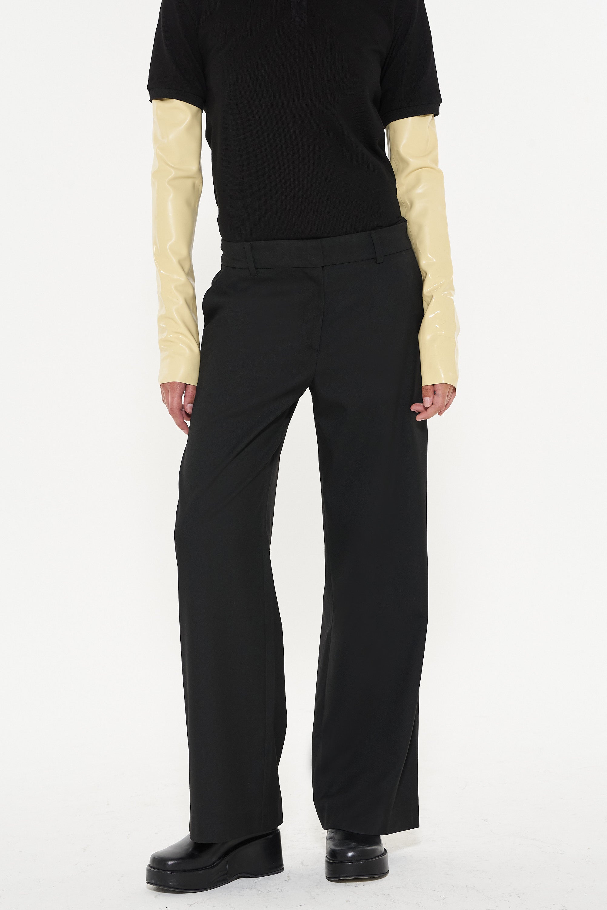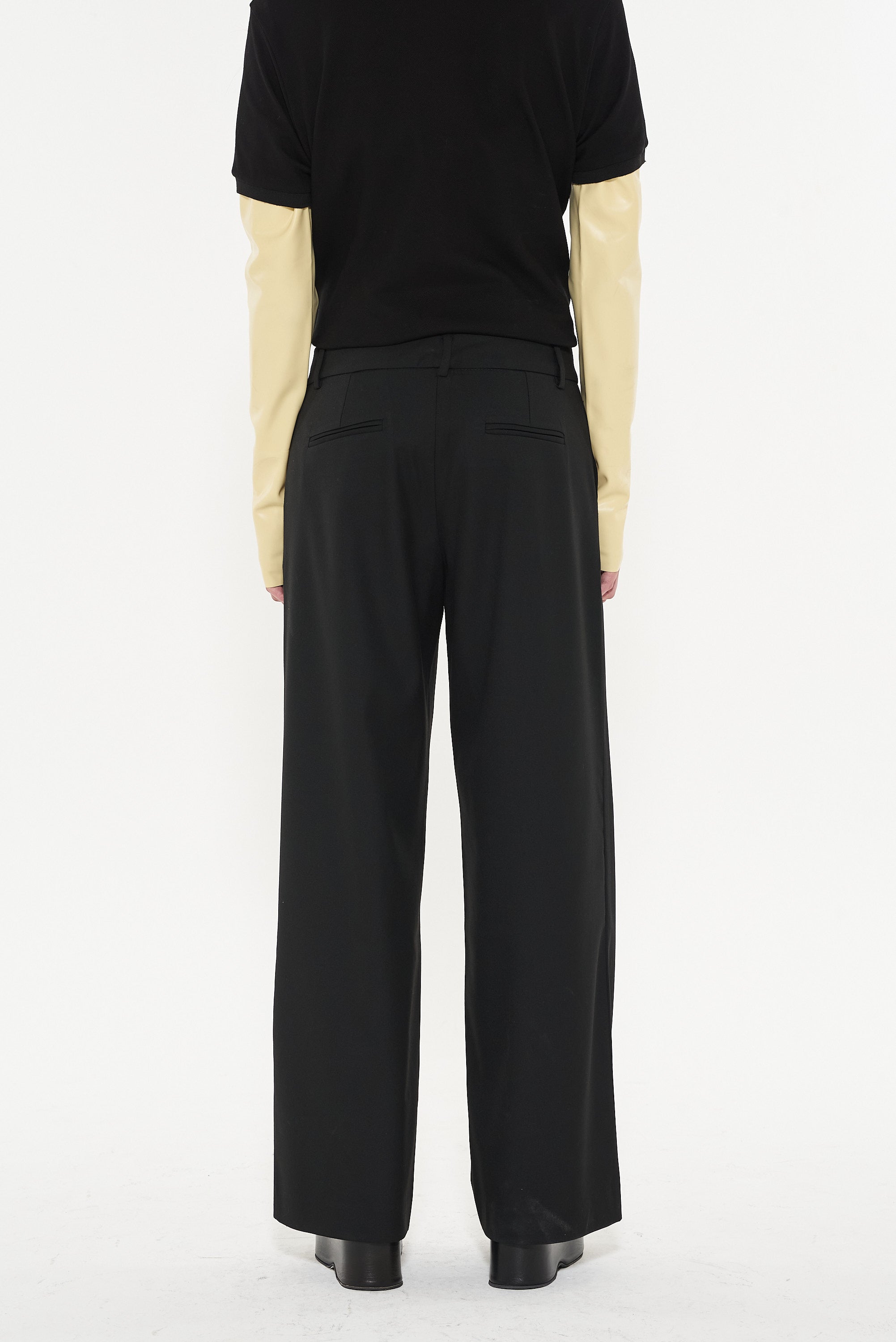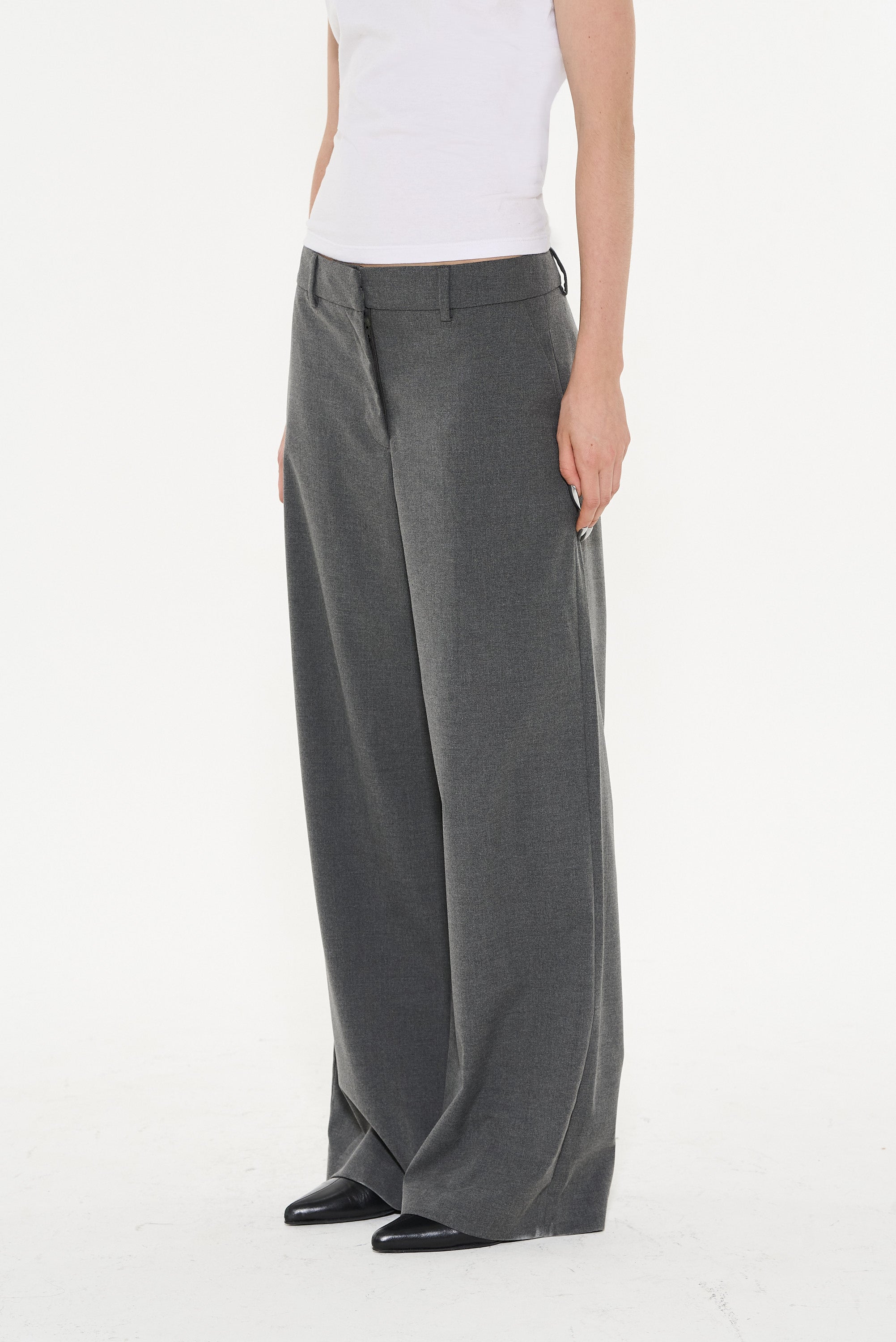 Pantalon sastrero confeccionado en sarga sastrera lisa. Calce loose y tiro bajo. Cintura con 5 presillas y cruce interno de gancho pantalonero y botón. Bolsillos en diagonal en el delantero y detalle de bolsillo ojal.