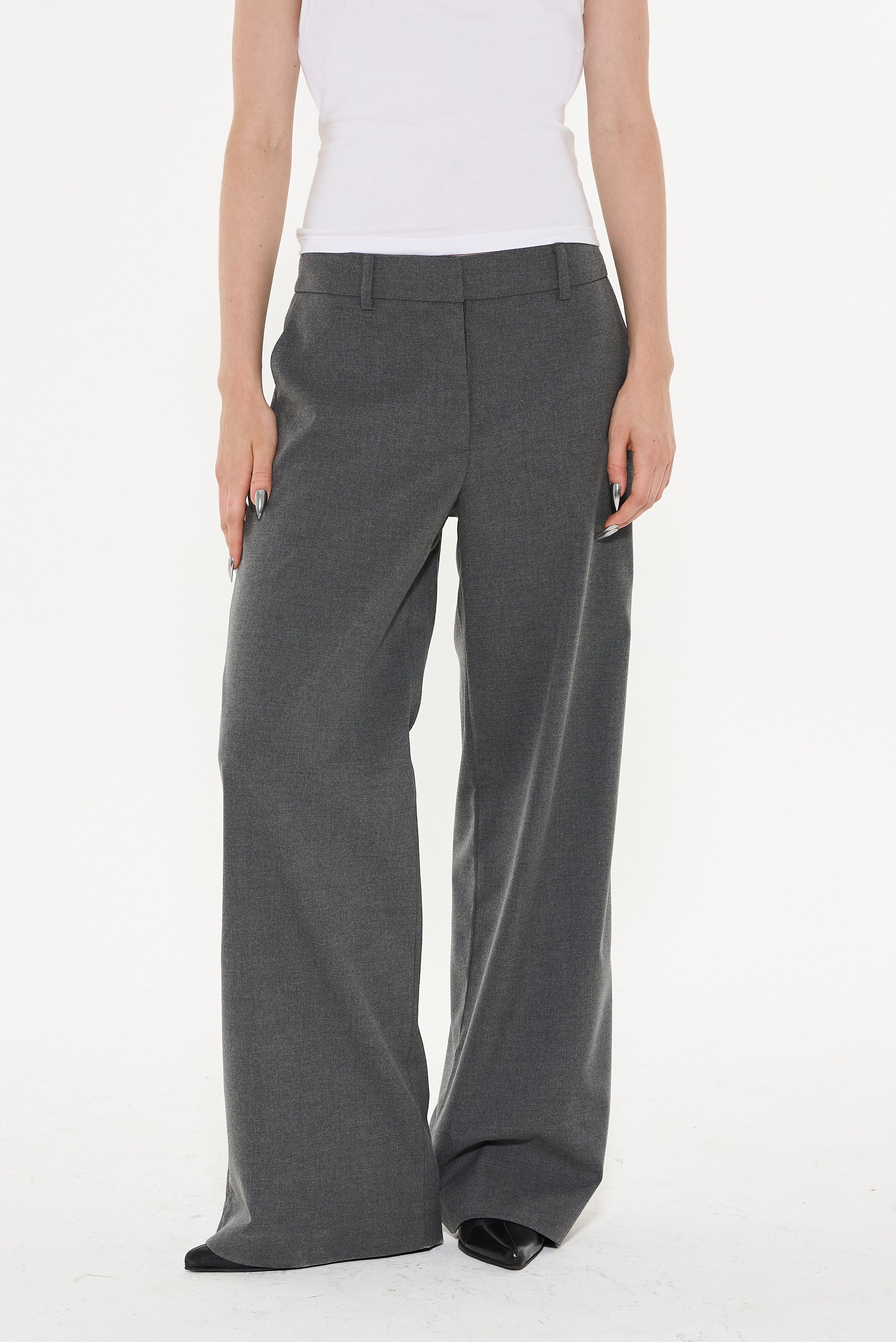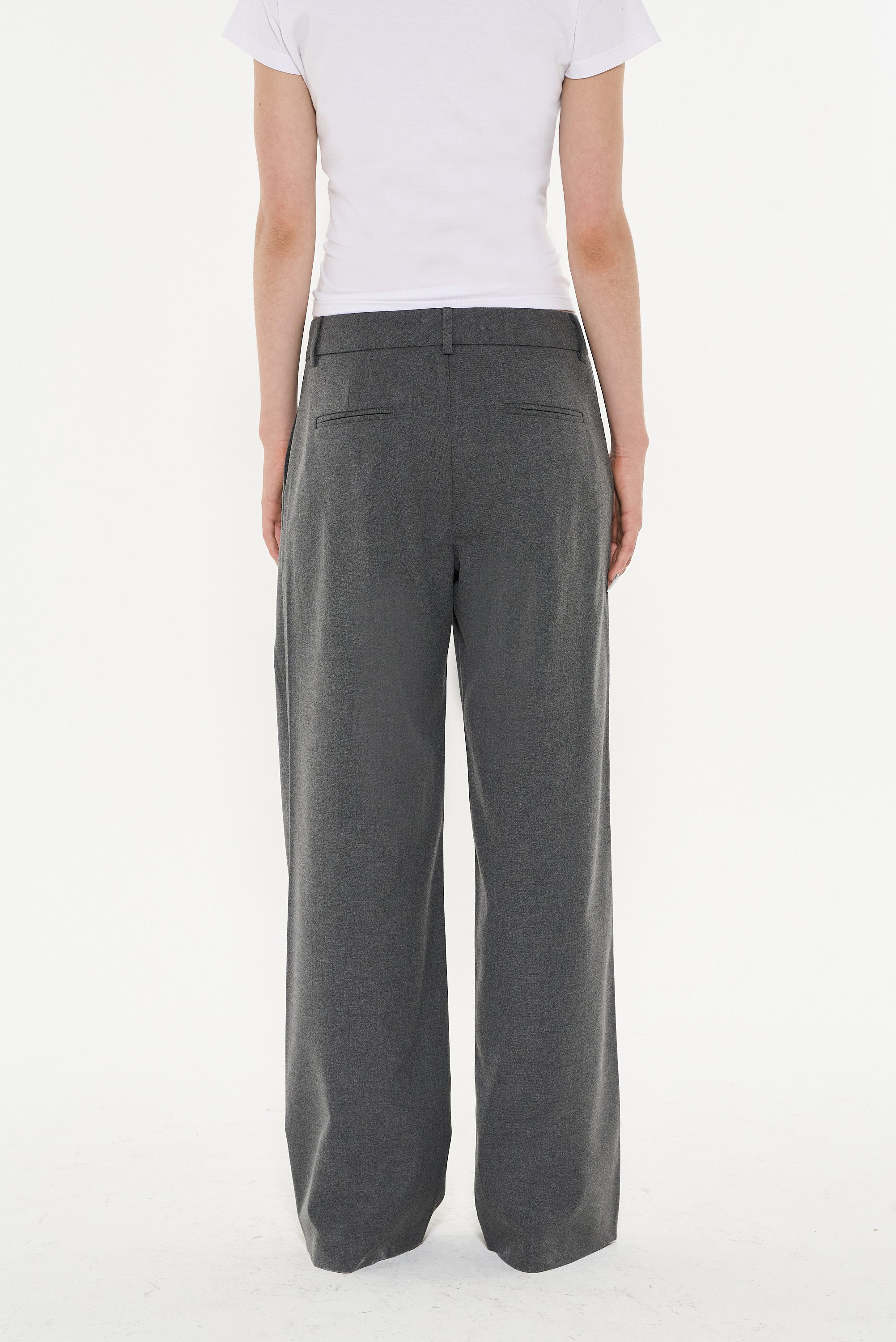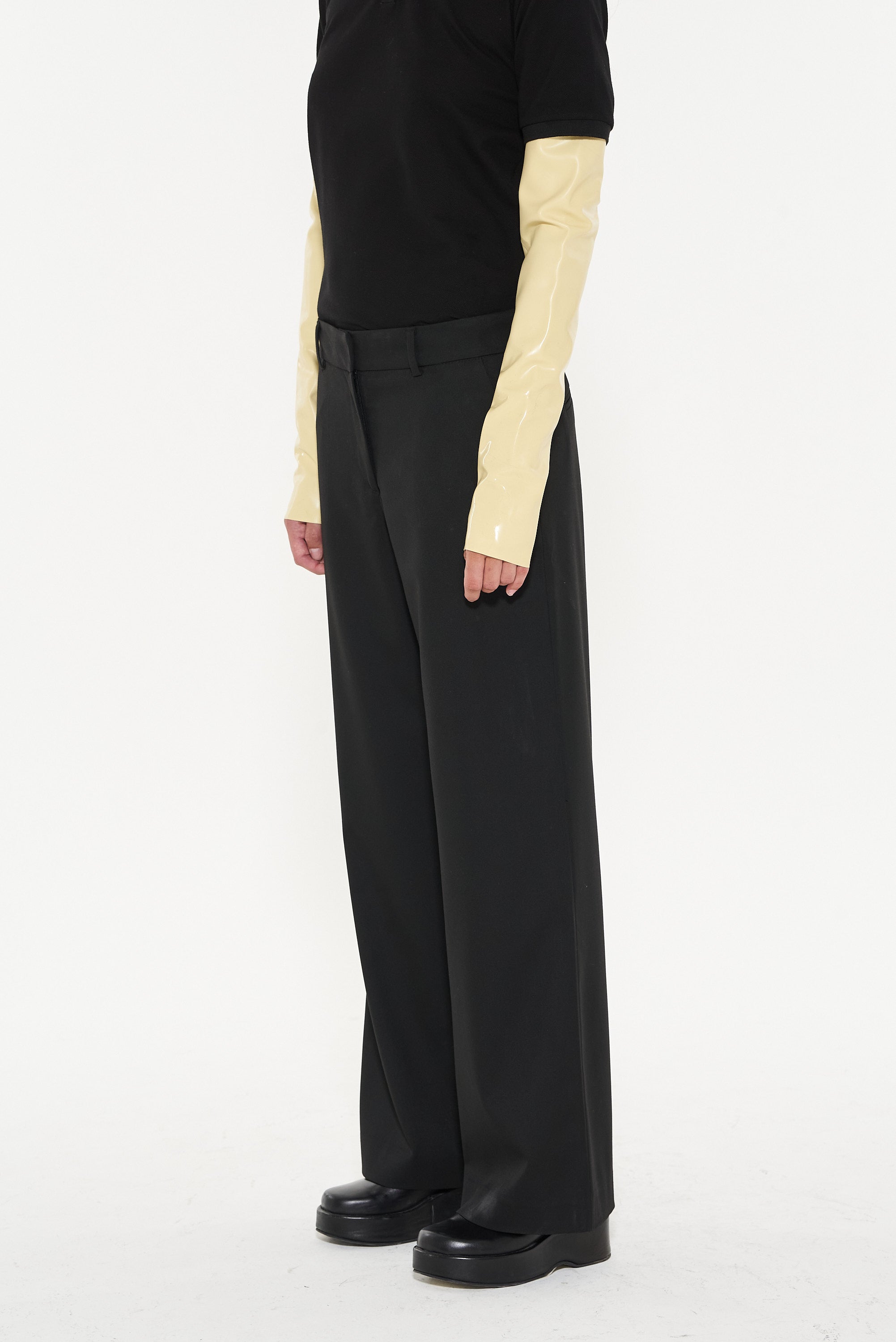 Pantalon sastrero confeccionado en sarga sastrera lisa. Calce loose y tiro bajo. Cintura con 5 presillas y cruce interno de gancho pantalonero y botón. Bolsillos en diagonal en el delantero y detalle de bolsillo ojal.