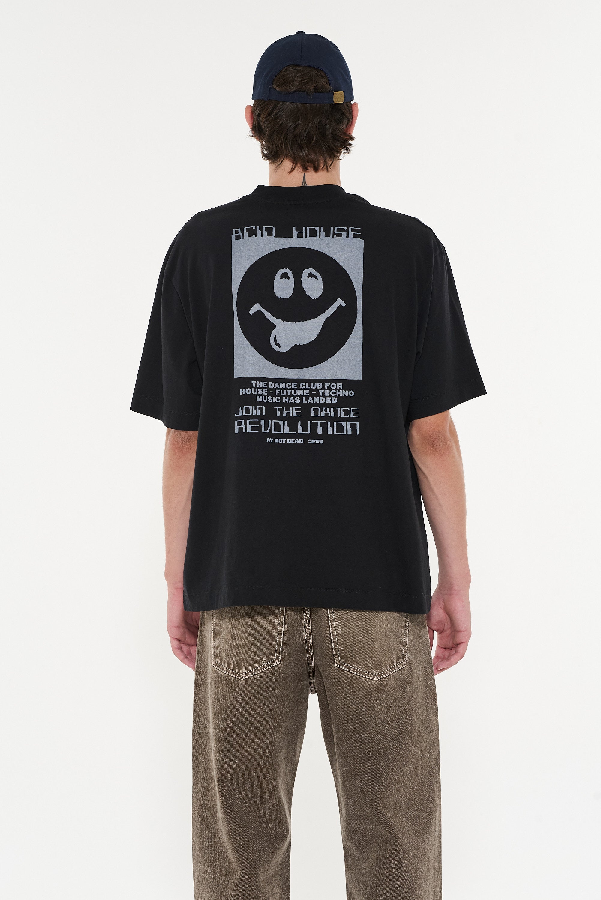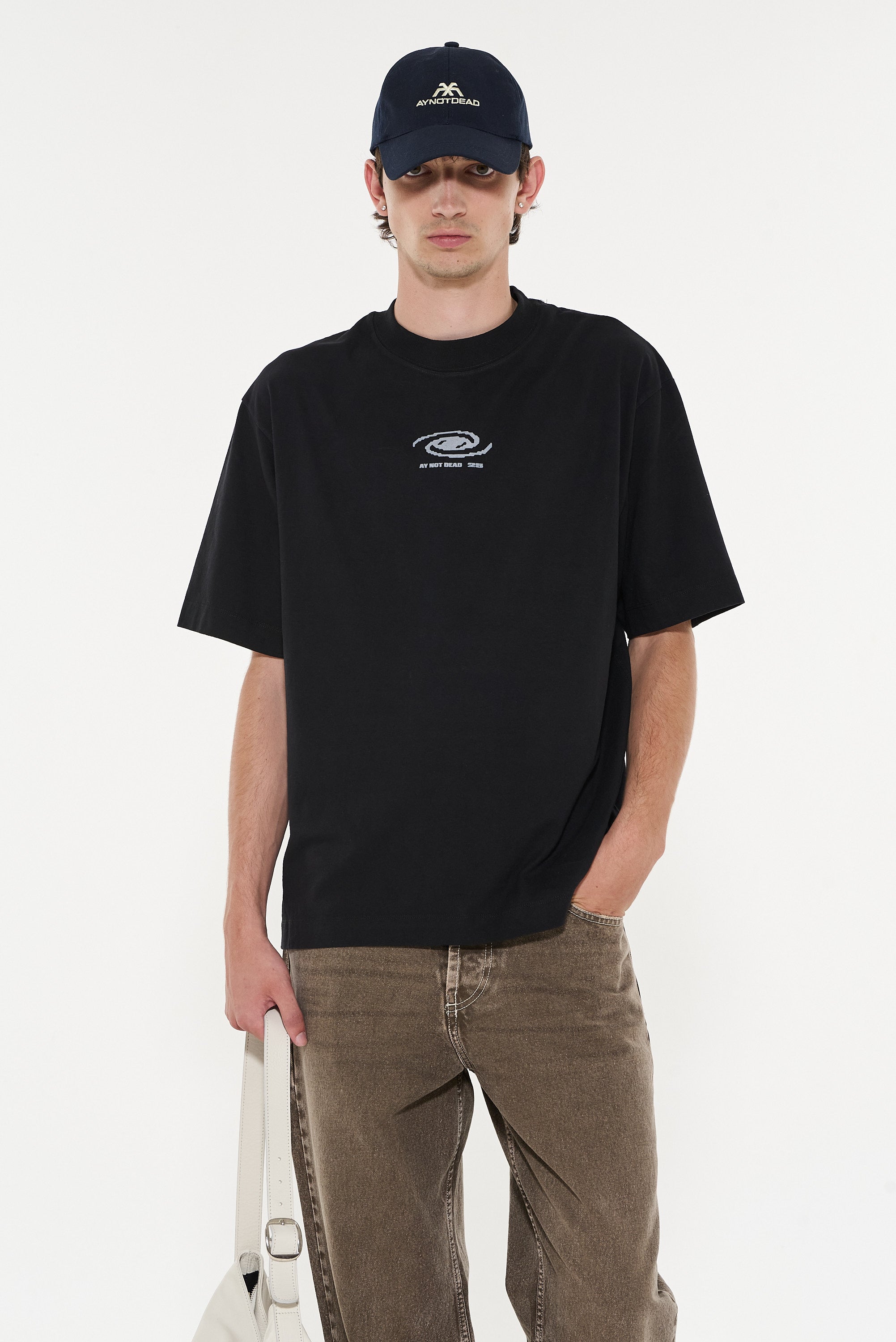 Remera manga corta de cuello redondo y calce oversize en jersey de algodón pesado. Estampa en frente y espalda.