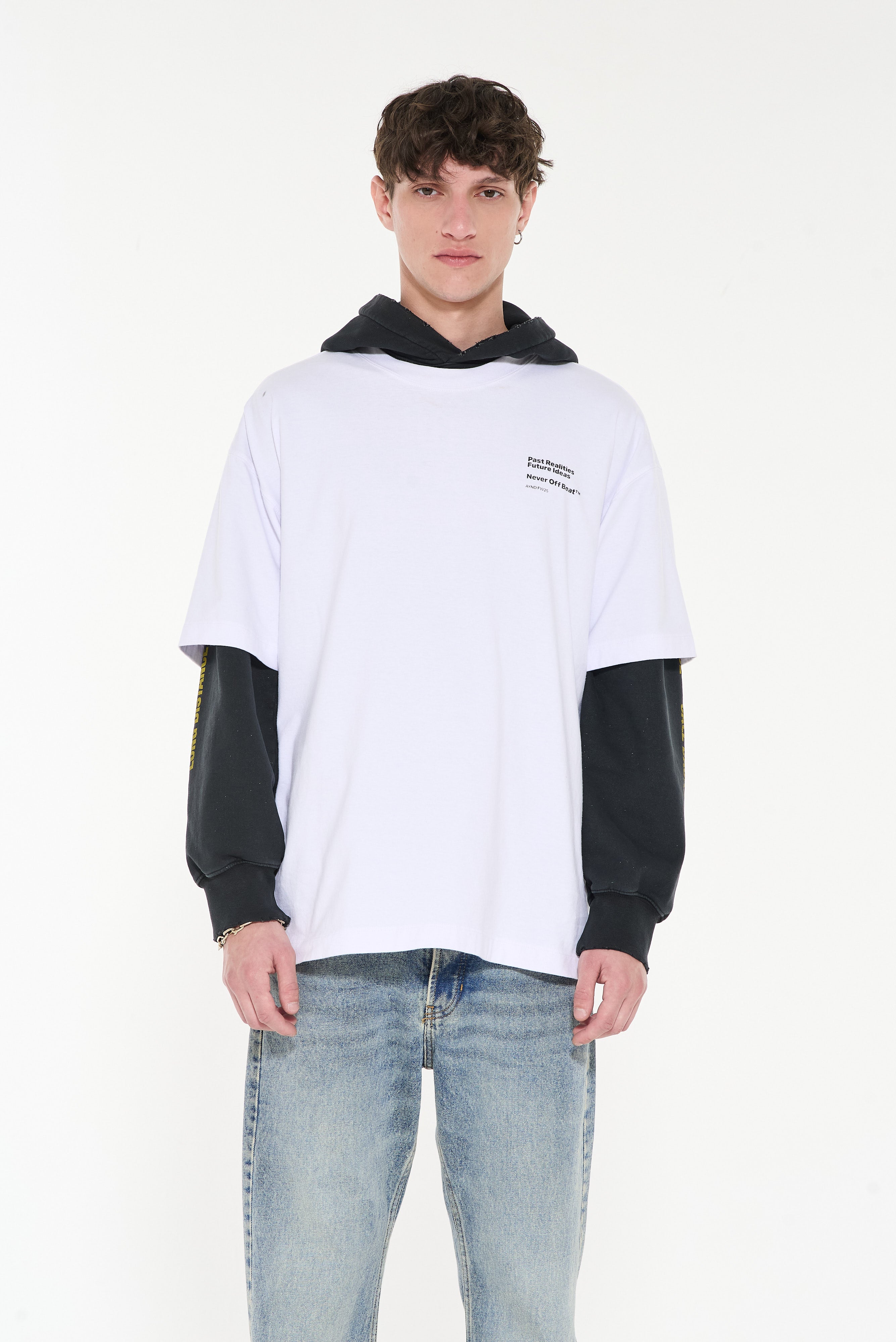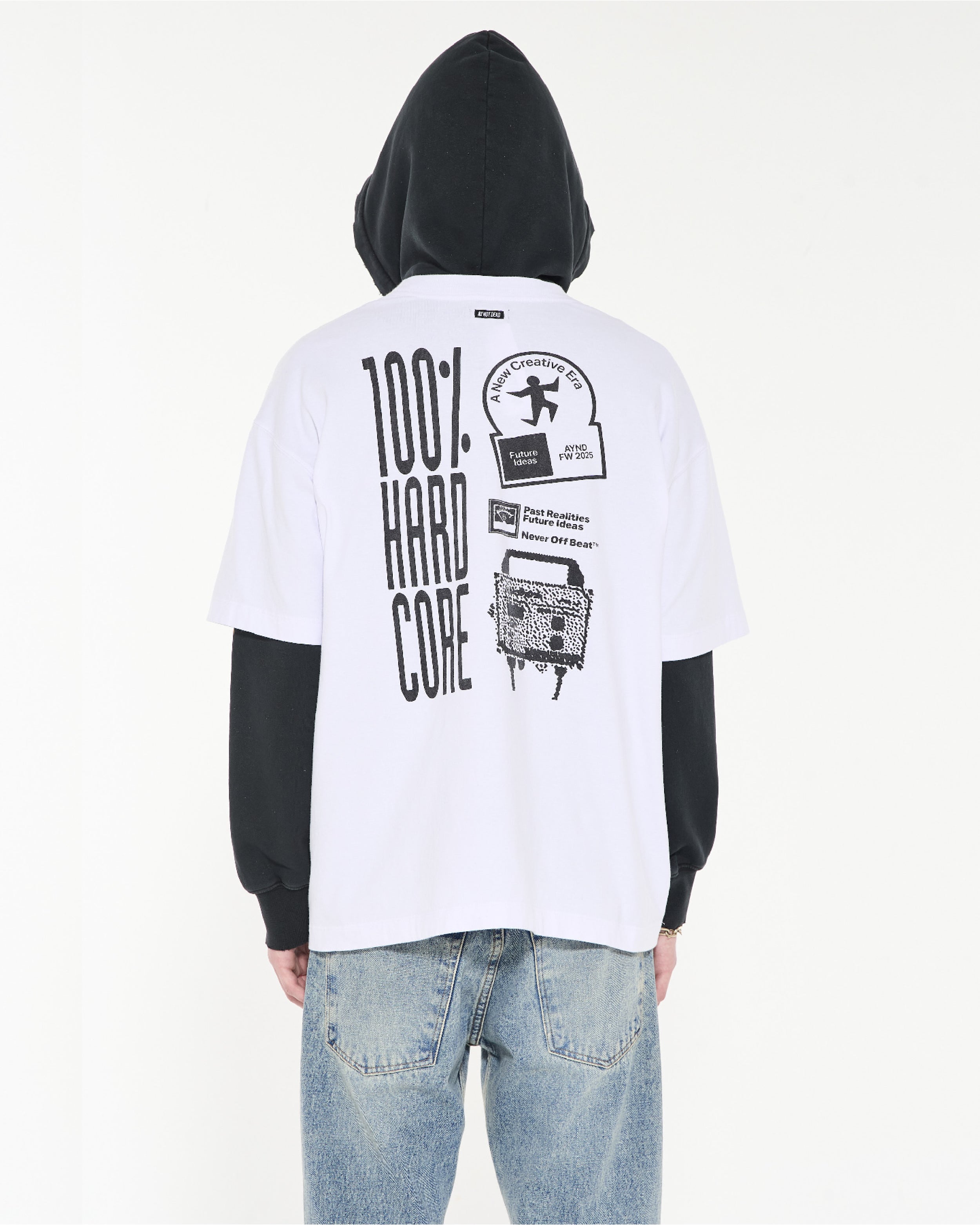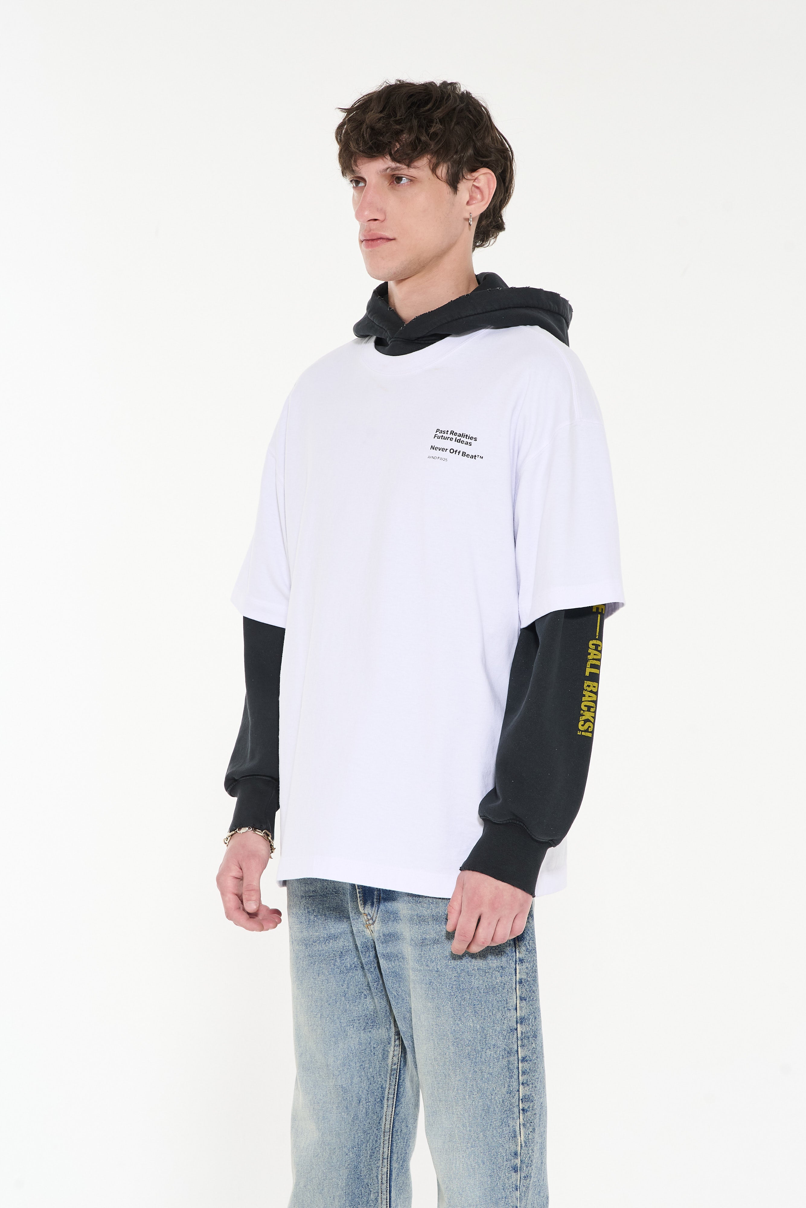 Remera manga corta de cuello redondo y calce oversize en jersey de algodón. Estampa a contra tono en frente y espalda.
