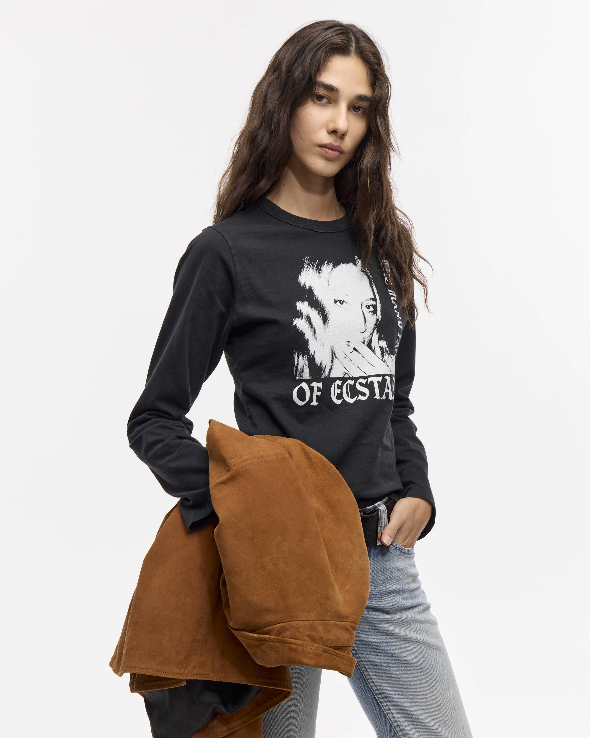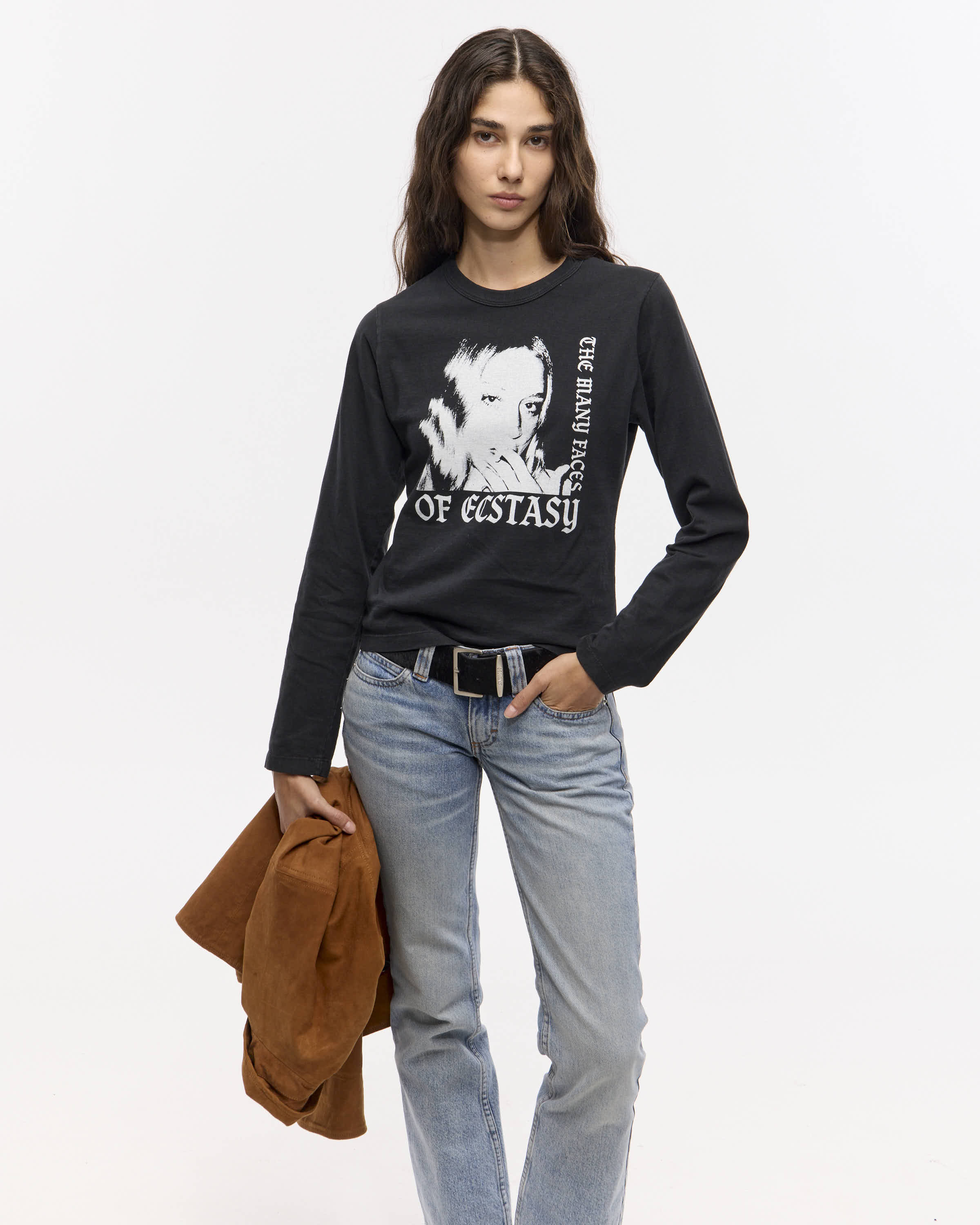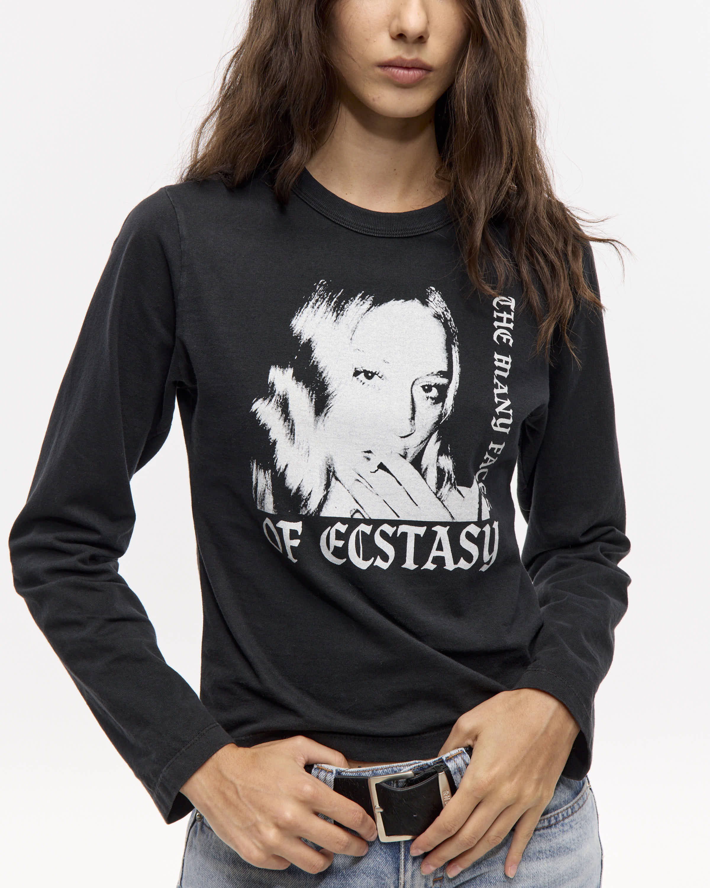 Remera manga corta con escote redondo en jersey de algodón. Calce regular con largo a la primer cadera. Estampa ´THE MANY FACES OF ECSTASY´ en delantero. Posee grifa de marca en espalda