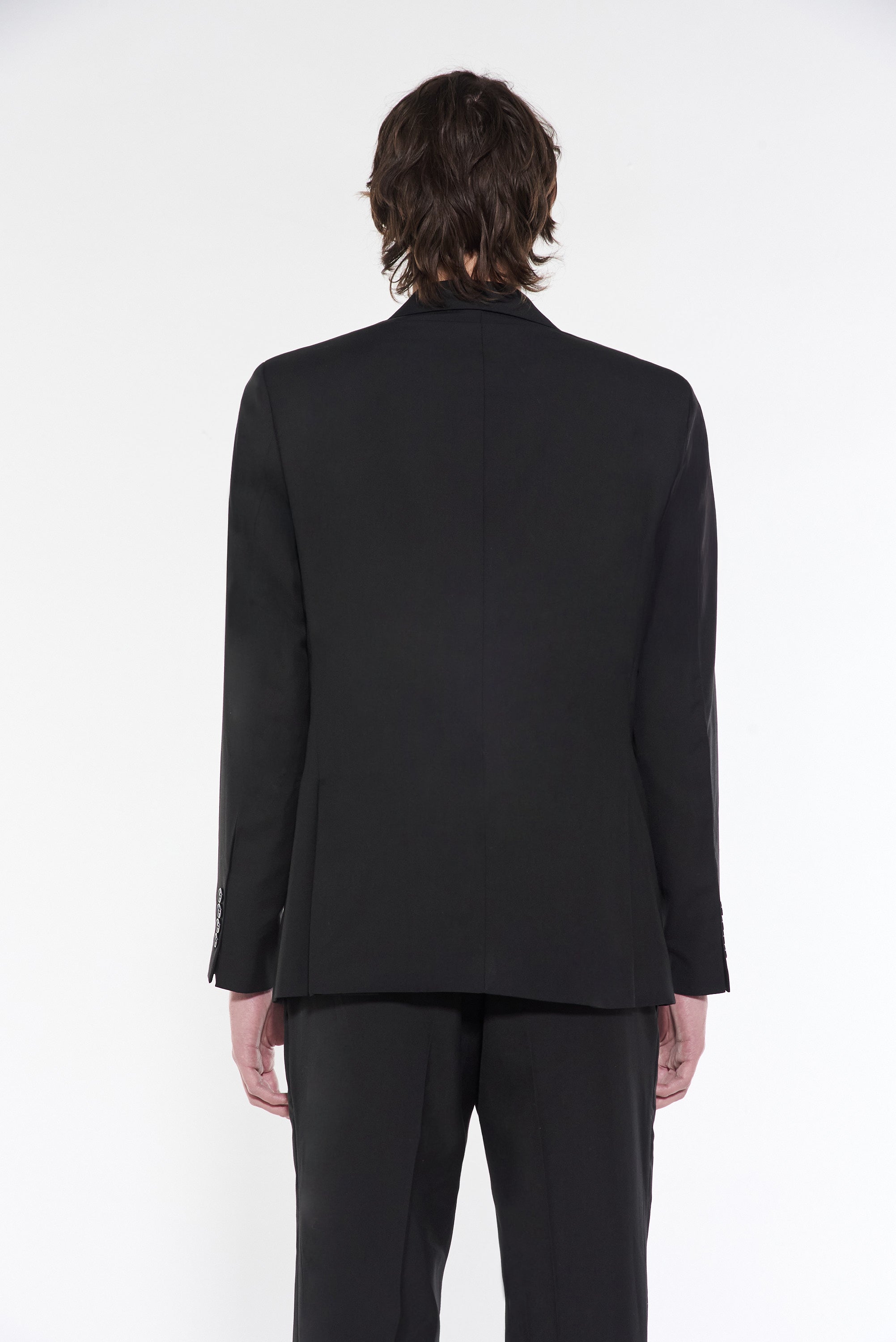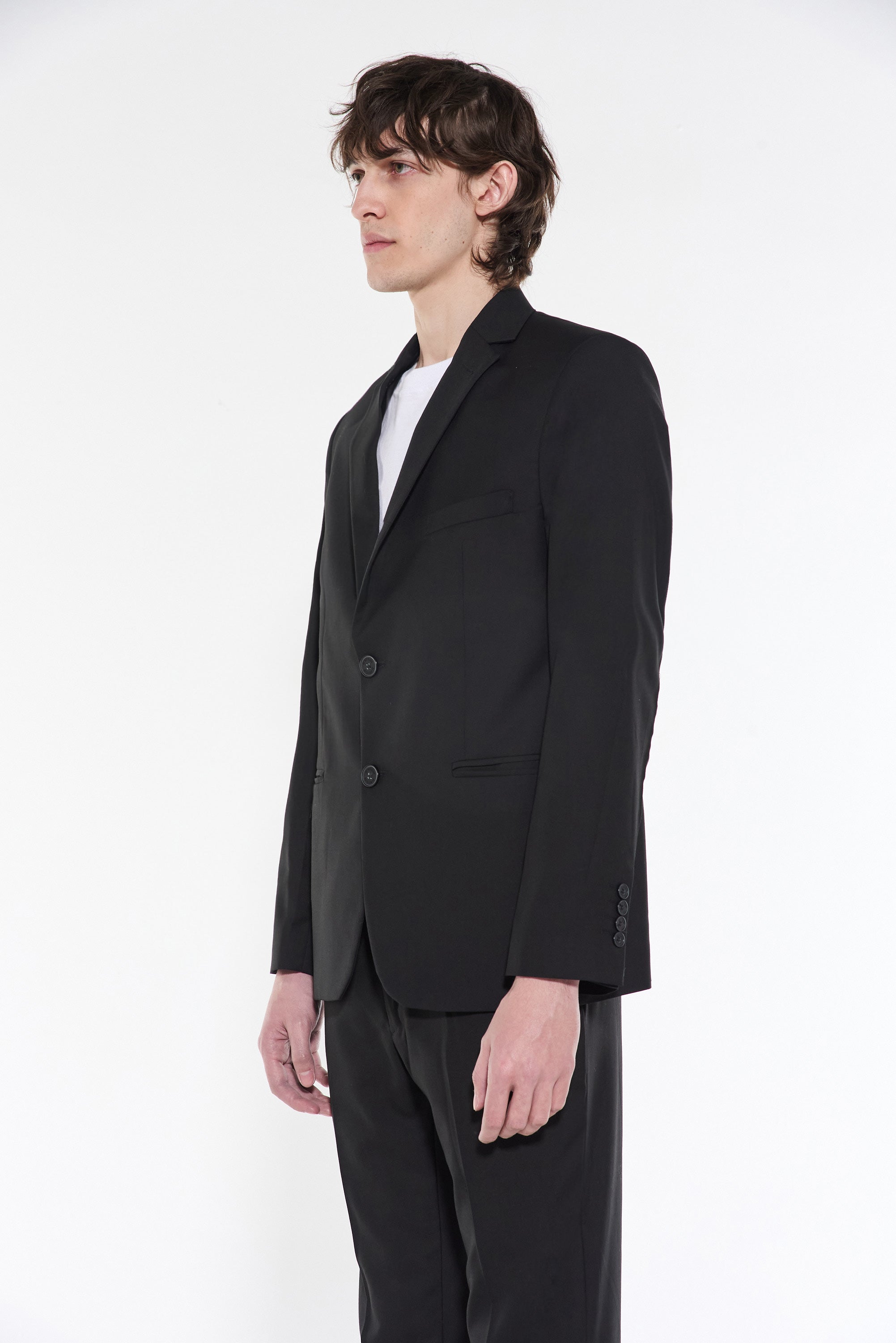 Saco sastre de cruce simple y cuello solapa. Calce al cuerpo, con tajos en espalda y puño con botones a tono.. Bolsillo sastre en delantero y con tapa en laterales.
