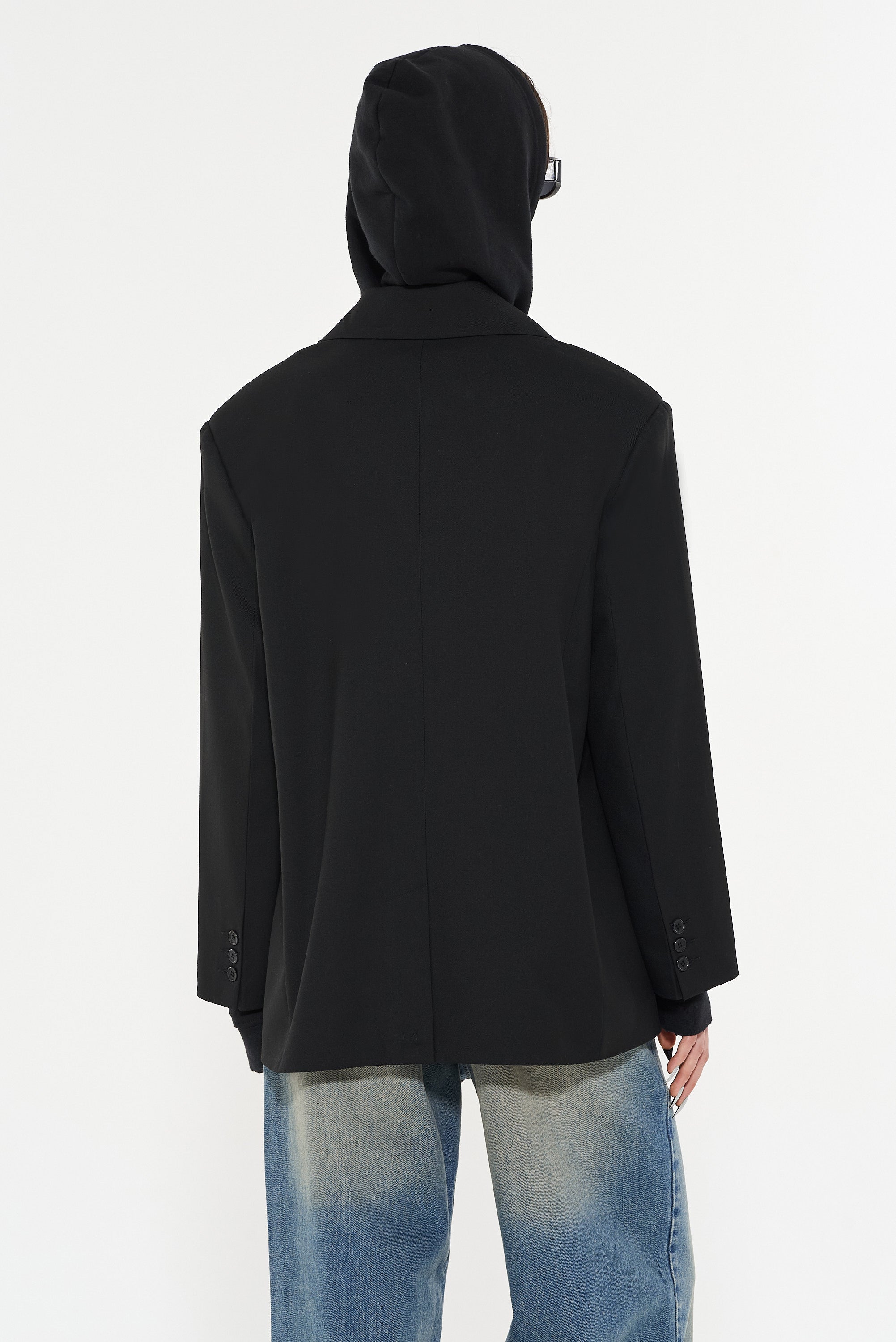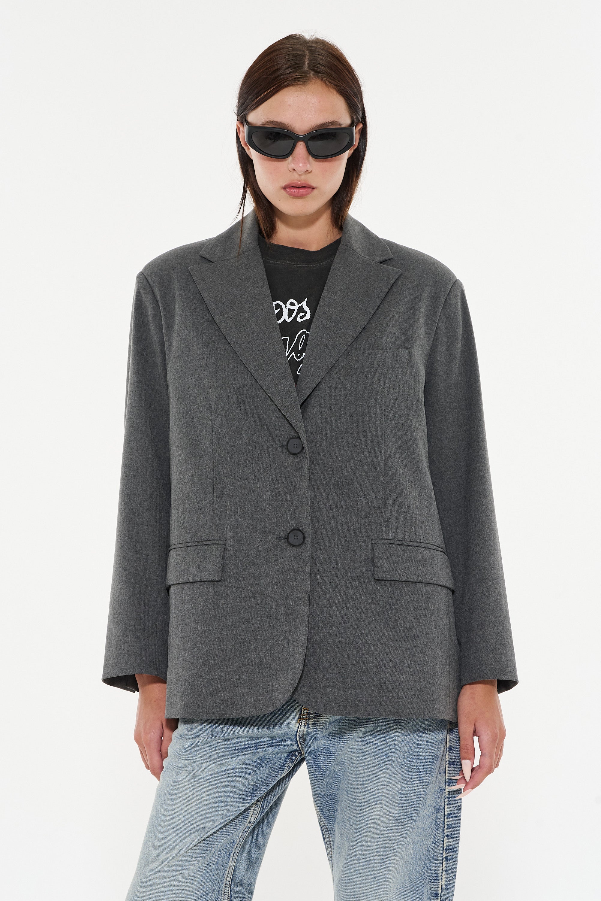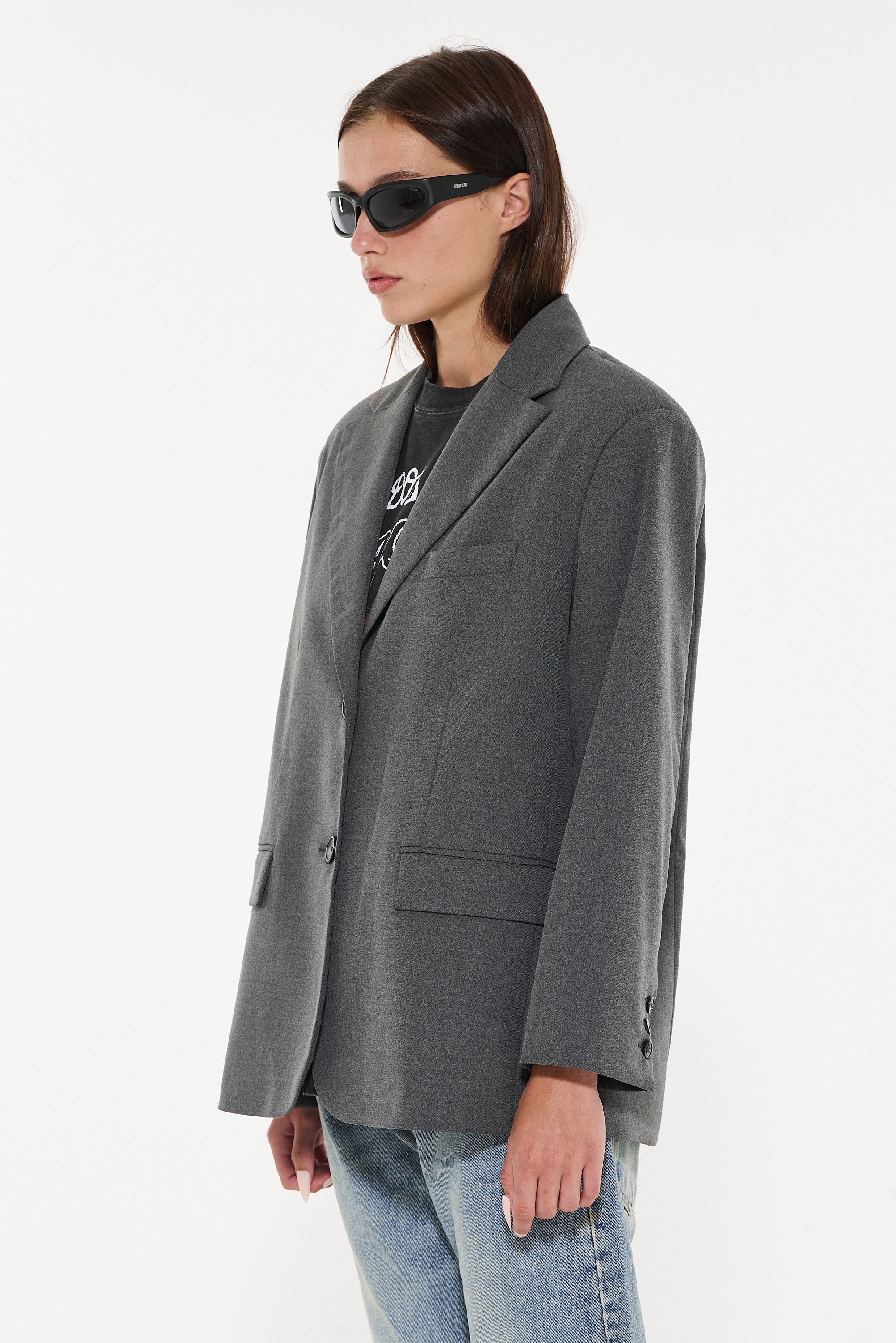 Saco sastrero oversize en sarga lisa. Bolsillos ojal con tapa en delantero y bolsillo sastre en pecho. Acceso delantero con botones personalizados. Tajo sastrero en bajo de espalda. Manga larga terminada en tajo con botones. Interior forrado con tafeta lisa negra.