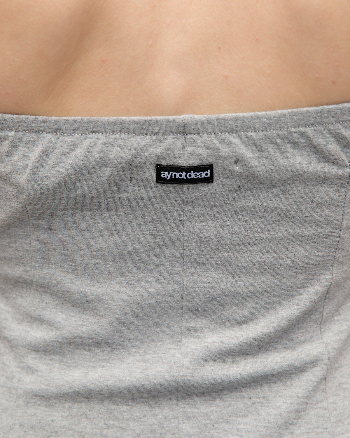 Vestido strapless confeccionado en algodón con elastano. Largo sobre las rodillas. Con recorte diagonal, ruedo irregular, escote volcado y detalle de tachas en su recorrido. Lleva un elástico embutido en la espalda.